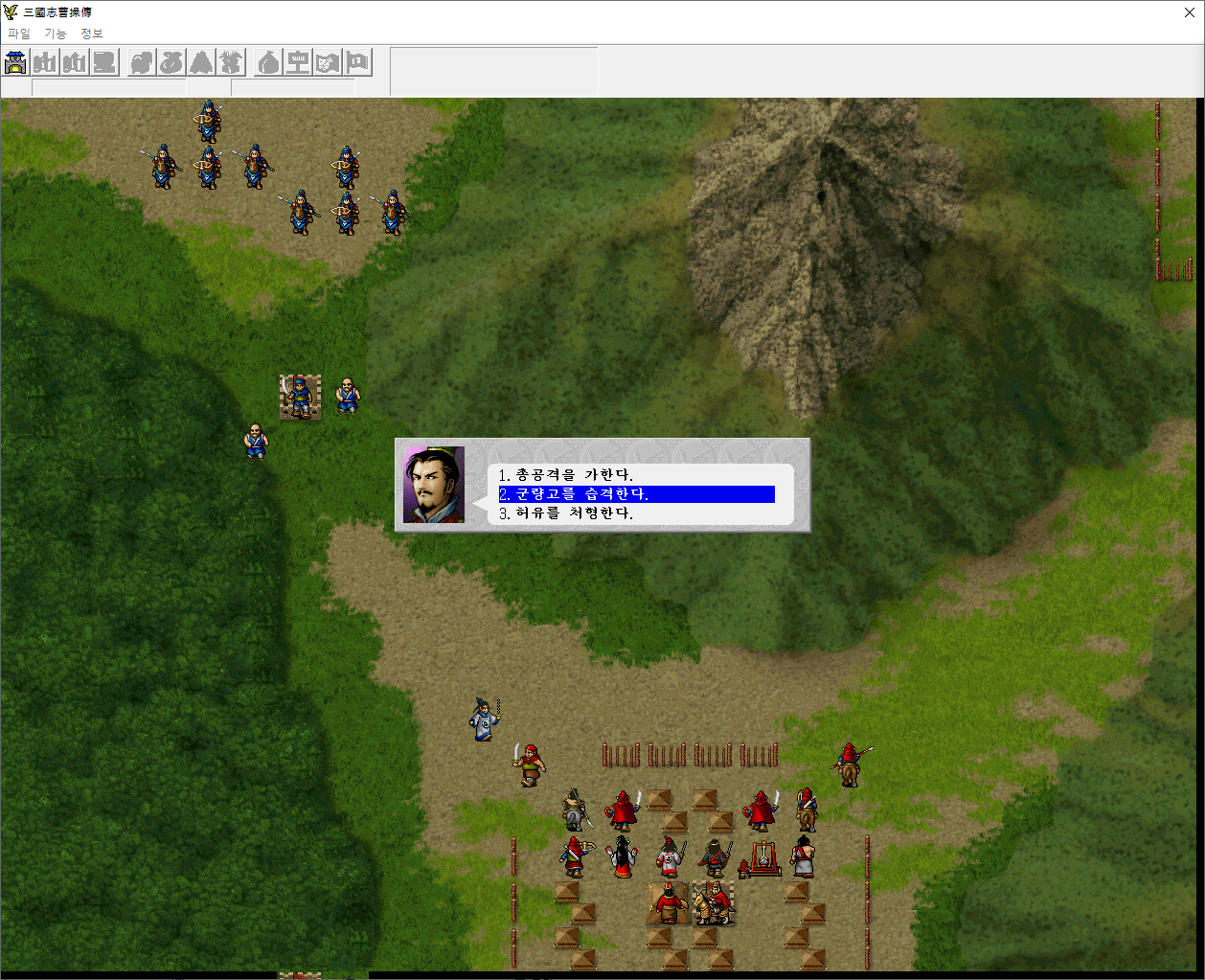 2번 선택시 - 별 변화 없음(아군 부대로 군량고 습격하면 군량고 수비대가 혼란에 걸림)